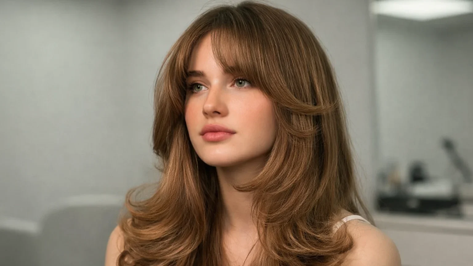 Curtain bangs continue to dominate trends. Paired with long layers, they frame the face beautifully and add softness.