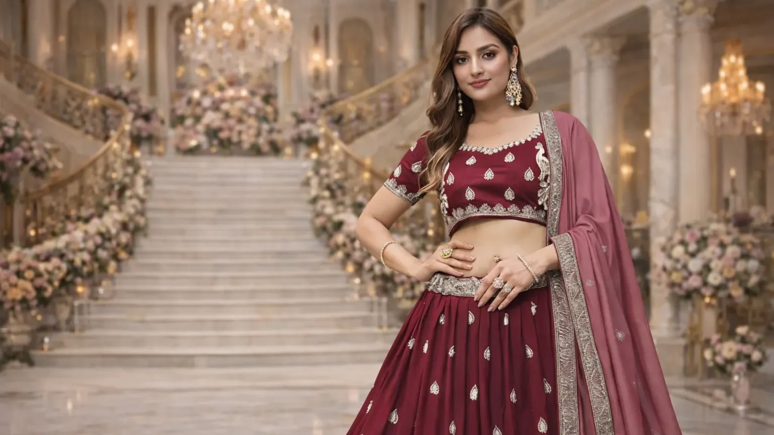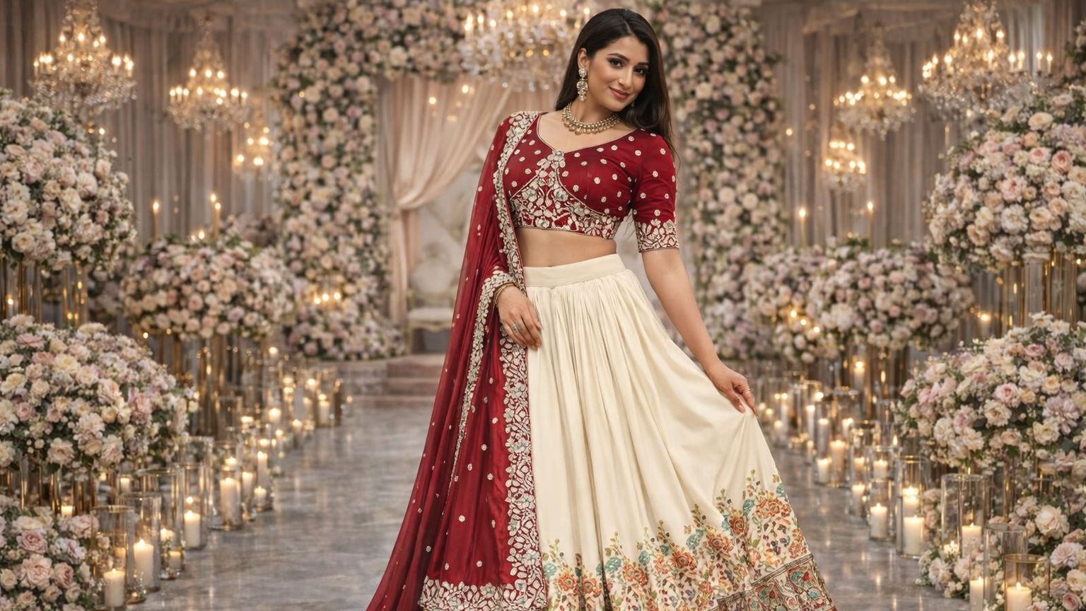 Choose a lehenga style that enhances your natural body shape. A-line lehengas suit most body types, while mermaid styles highlight curves.
