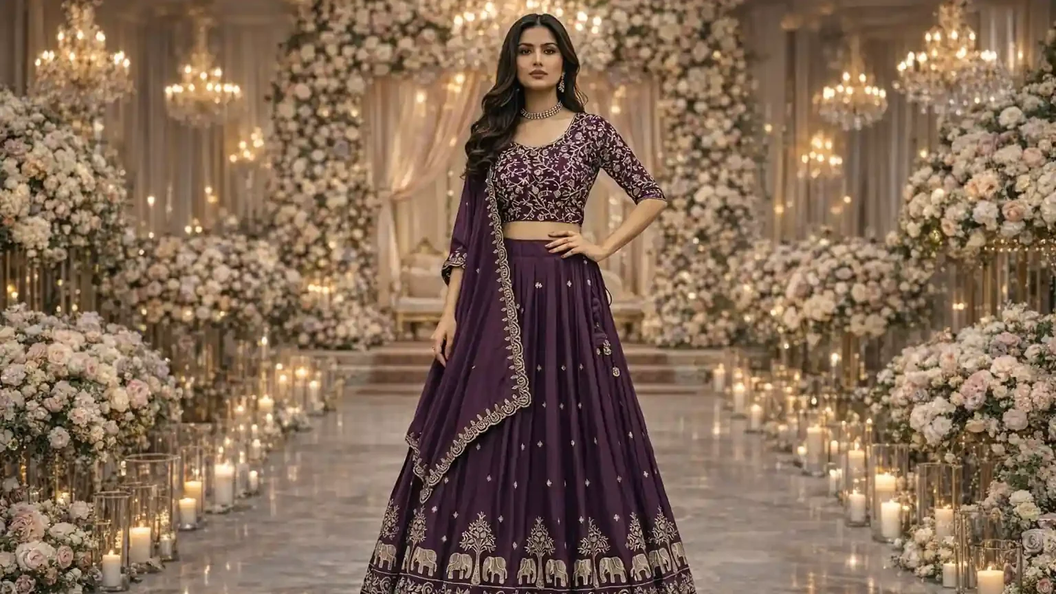 Velvet lehengas offer a royal and luxurious appearance. The rich texture of velvet makes the outfit look grand and sophisticated. These lehengas are commonly seen in deep shades like maroon, wine, navy blue, and emerald green.
