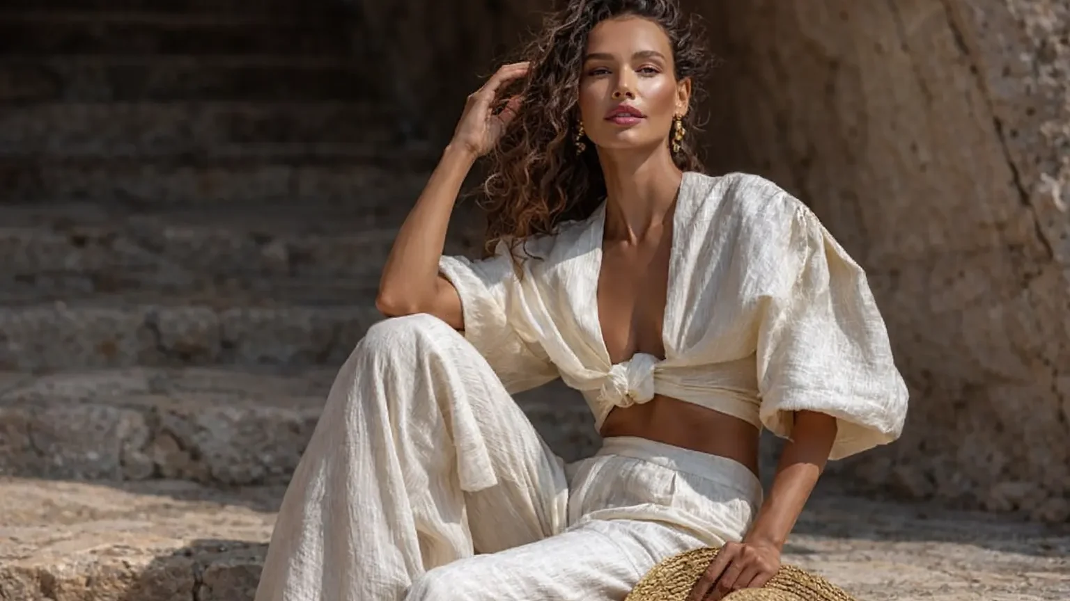 Work and office: Linen trousers with a structured blouse, a shirt dress in a subtle print, or a midi skirt with a fitted top. Minimal accessories keep it professional.